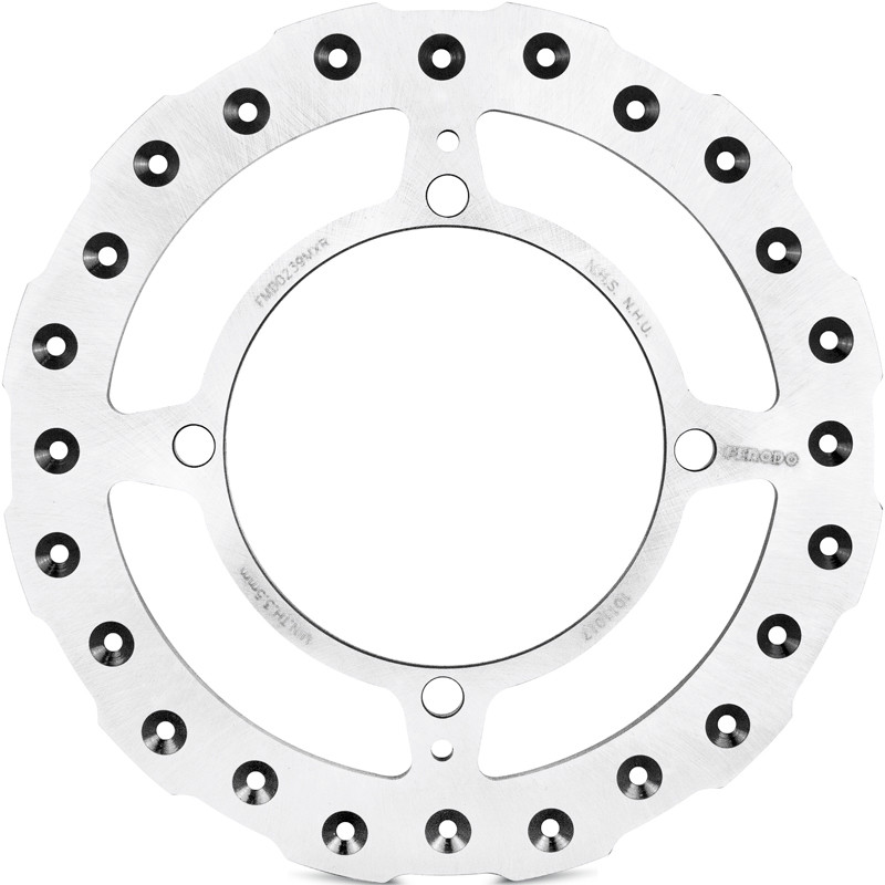 Standard, one-piece fixed disc with cross drilled holes, specifically designed for motocross applications.