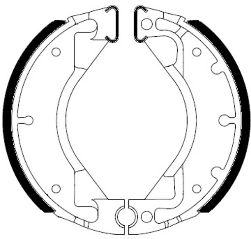 Brake shoes lined with organic friction material.